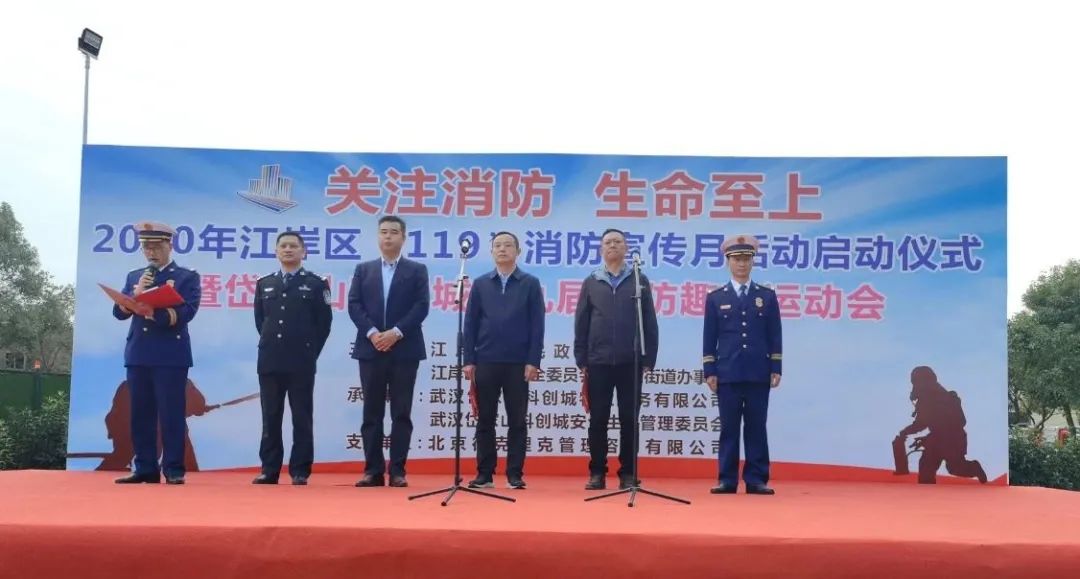 11月6日下午,2020年江岸區(qū)“119”消防宣傳月活動啟動儀式暨岱家山科創(chuàng)城第九屆消防趣味運動會在岱家山科創(chuàng)城足球場隆重舉行。江岸區(qū)各街道辦事處、百步亭社區(qū)、各派出所、街道微型消防站代表隊、武漢格晟工業(yè)技術有限公司企業(yè)有幸受邀參加,與園區(qū)內(nèi)企業(yè)代表共500多人參加了本次活動。