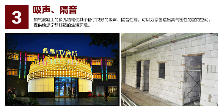 吸聲、隔音:加氣混凝土的多孔結(jié)構(gòu)使其個(gè)備了良好的吸聲、隔音性能,可以為您創(chuàng)造出高氣密性的室內(nèi)空間。提供給您寧靜舒適的生活環(huán)境。