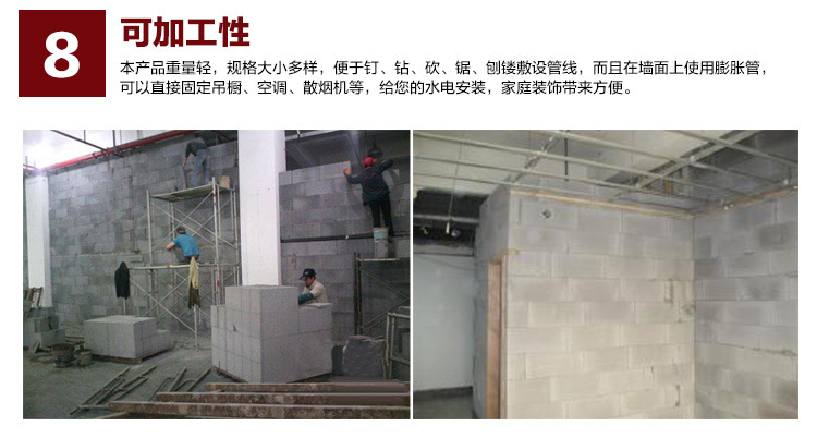 可加工性:本產(chǎn)品重量輕,規(guī)格大小多樣,便于釘、鉆、砍、鋸、刨鏤敷設(shè)管線,而且在墻面上使用膨脹管,可以直接固定吊櫥、空調(diào)、汕煙機(jī)等,給您的水電安裝,家庭裝飾帶來方便。